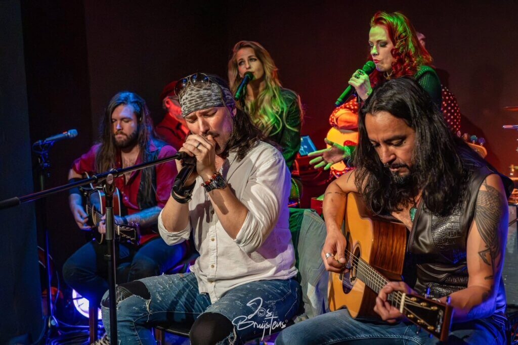 Zet je schrap voor een avond vol pure rock-‘n-roll energie — zonder muur van versterkers, maar met volle overgave en akoestische power. Dé 8-koppige band Slash n’ Roses (NL) brengt een eerbetoon aan de legendarische Guns N’ Roses, rauw en écht, met meerstemmige zang, strakke grooves en akoestische gitaren die vonken geven.